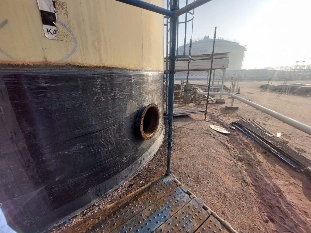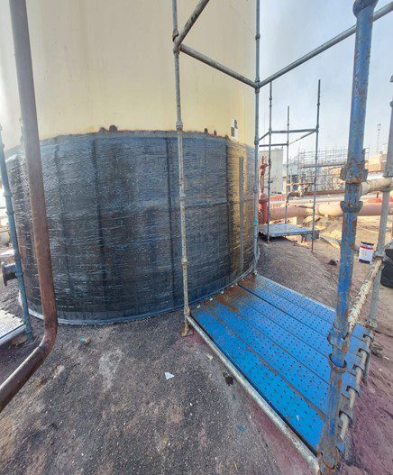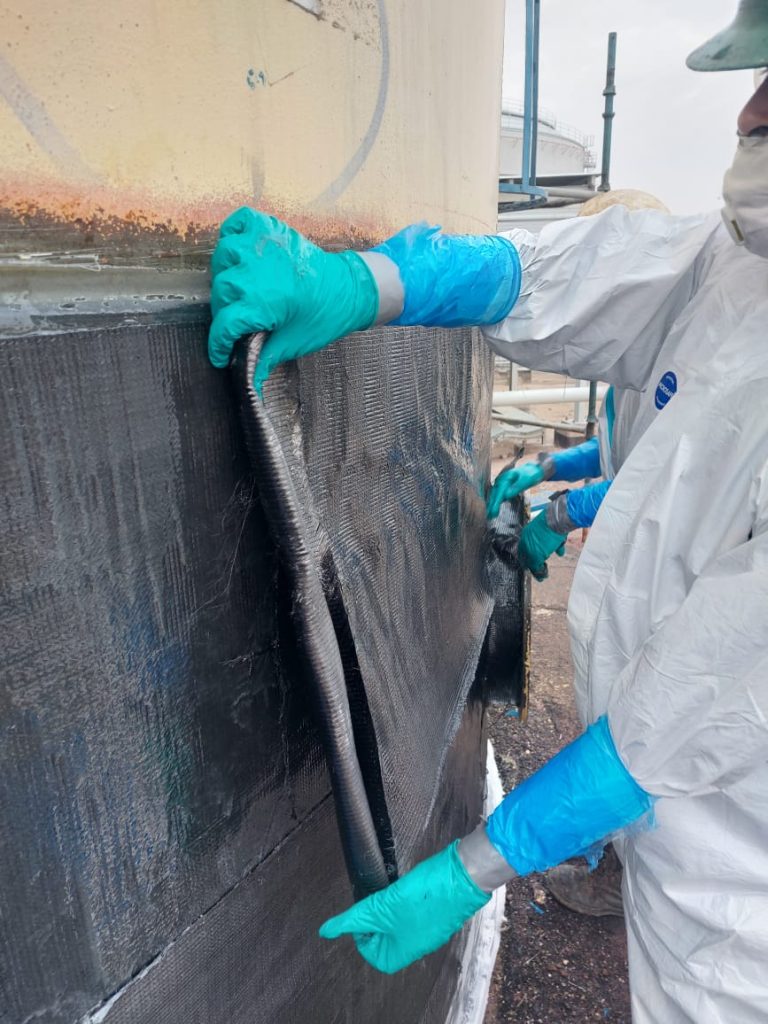 ICR was requested to restore the integrity of a corroding carbon steel firewater tank in Iraq using Technowrap™ composite repairs.