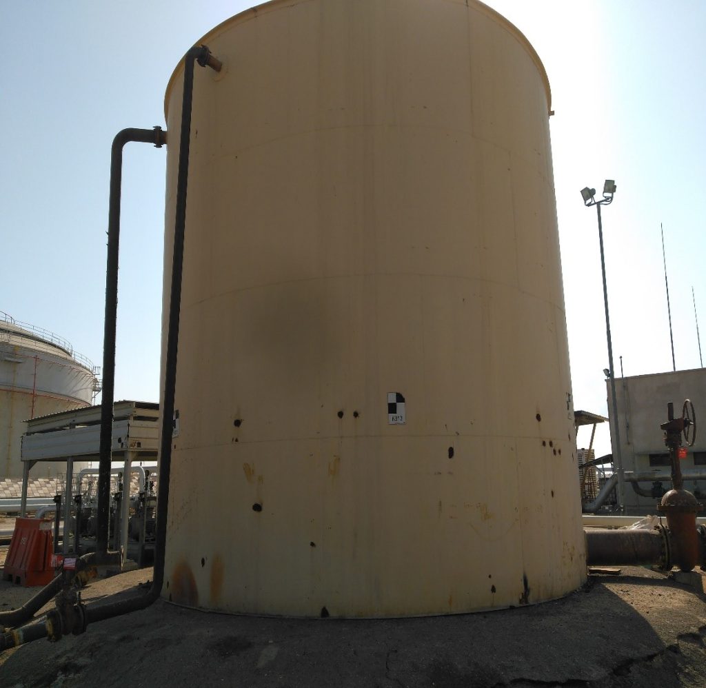 - Ten repair patches measuring 950 mm × 300 mm applied to vertical seam welds on the internal tank wall